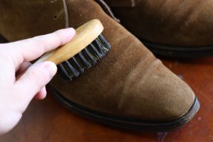 スエードはひび割れたりすることは殆どないのですが、こういった形でしっかりとシワを伸ばしてブラッシングをしてあげることで毛の奥に詰まったホコリを掻き出せますので全体的な埃っぽさは