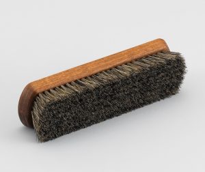 まず、馬毛のブラシで毛並みを整えます。