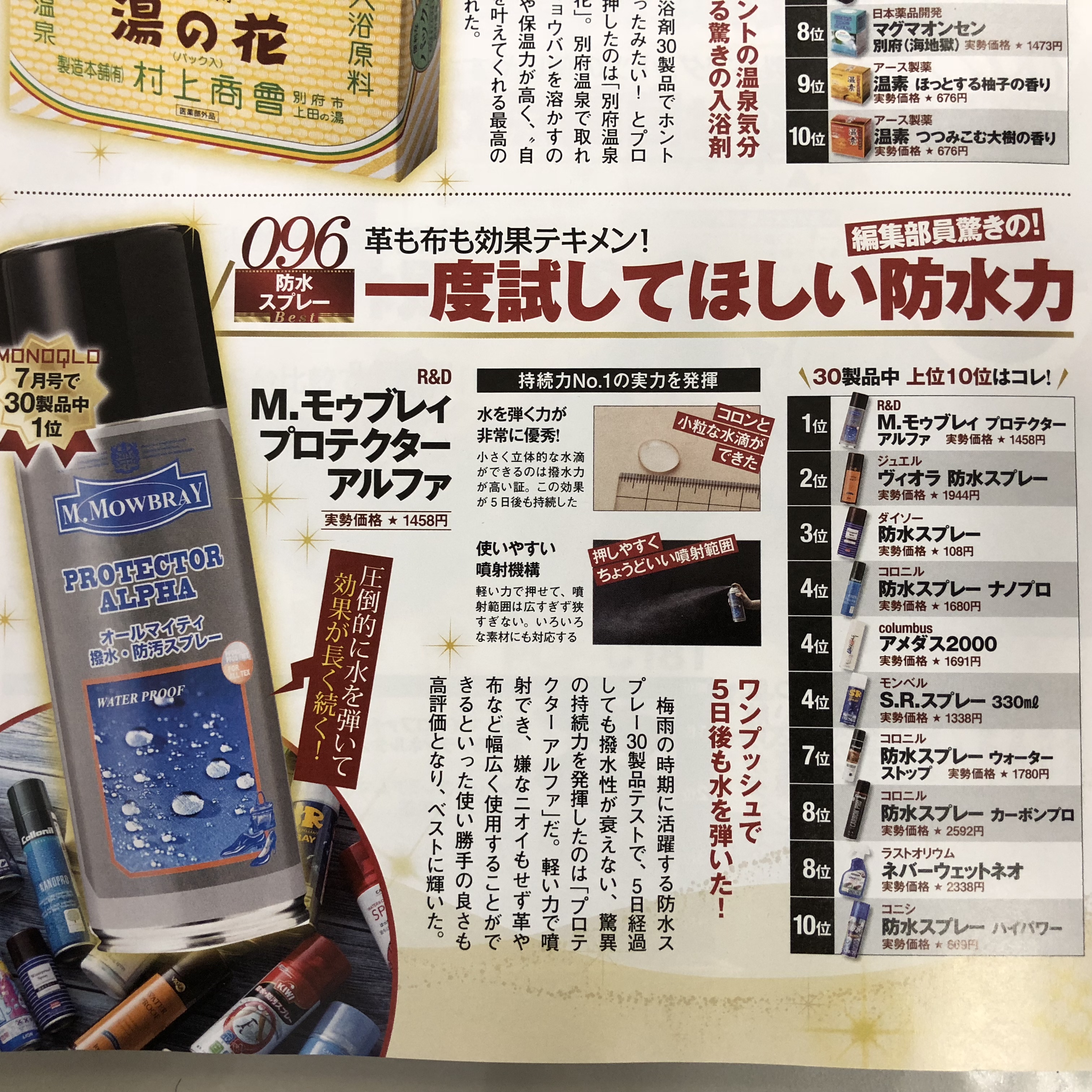 30種類もの防水スプレーの中で選ばれたことは大変うれしく思います。