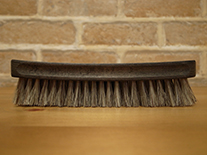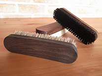 靴用ブラシは靴磨きの命と言っても過言ではない。日本には、松竹梅・甲乙兵・上中下など物の等級を表す言葉が多々あるが、ブラシの世界にも最上質な「松」、「甲」、「上」が存在する。Sanohata Brush(さのはたブラシ)は、細部にまで強いこだわりを持ったジャパンクオリティの最上ランクのブラシと自負している。ブラシの最も重要な部分である毛は、目利きのある職人が厳選し、耐久性と弾力性に優れた天然の豚毛、馬毛を採用。そして、持ち手部分は、上質なブナ材をオイルステインという技法で仕上げたクラッシック感が「王道のブラシ」を象徴する。さらに、持ち手部分にカーブをつけることでブラシが抜けやすく、またグリップしやすいように溝を掘り込んでいることで抜群の使用感を実現。持ち手部分の曲線に相反して、毛の植え込みは“直線揃え”の技法を採用している。これはブラッシングの際にブラシの毛先全体が届くようになるので、接触面積が一般的なブラシに比べ格段に広くなるという緻密な職人気質のディテールなのである。