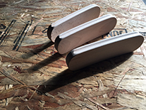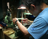 銅や真鍮の一枚の板を丁寧に伸ばし、オールハンドメイドで作った携帯用の靴べら。ベースとなる技法は「鍛金(たんきん)」と呼ばれ、1枚の平らな板を叩いて形を成型する技術で製造している。鍛金の後は、靴の代表的なデザインであるウイングチップ(おかめ飾り)とローファー(突っ掛け靴)をモチーフにした独自性のあるデザインを、糸ノコを使って手作業で施していく。最後は丁寧にヤスリ掛けして仕上げれば完成。オリジナリティのあるデザインと職人の技術が生み出すその味わいに興じるのも大人の嗜みである。
