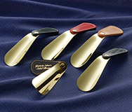 本真鍮から放たれる鋭い輝き。一般的なメッキ加工とは比較にならない程の重厚感。「吉田三郎商店」の二代目吉田尚(き)氏が丹精こめて製造する「ソリッドブラスシューホーン」は、カカトにジャストフィットする絶妙なフォルムで、その使用感は通をうらなすほどの品質。これがロングセラーの由縁でもある。持ち手部分は老舗タンナーから買い付けしたレザーの王道「ブライドルレザー」を使用し、真鍮とのハーモニーを奏でている。アイビーをこよなく愛する吉田氏が、そのなごりを今に伝えるアイテムである。